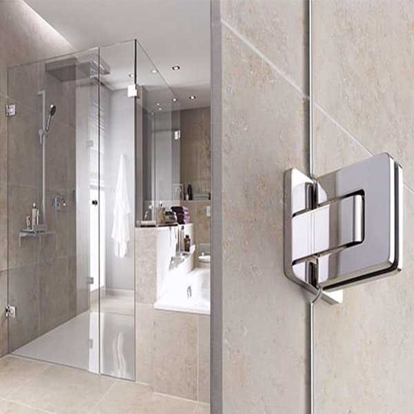 - Bisagra para vidrio templado con una apertura de hasta 90°.