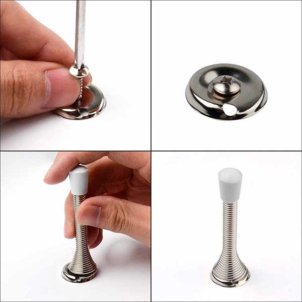 - Tope de puerta tipo resorte para pared de fácil instalación.