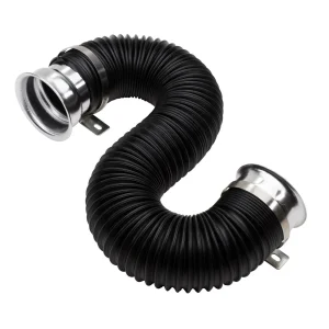 Tubo de aspiración negro con racores plateados de 76 mm de diámetro