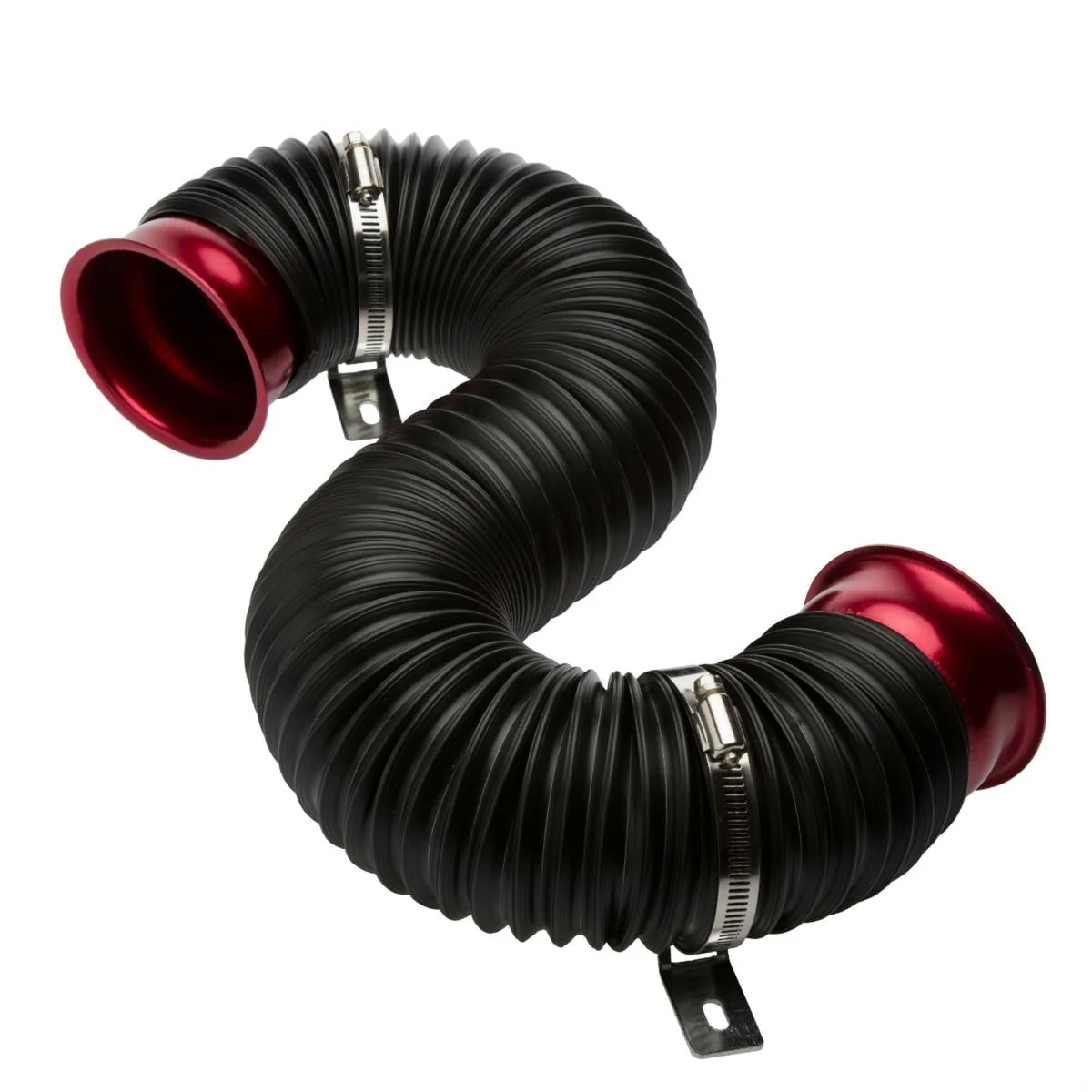 Tubo de aspiración negro con racores rojos de diámetro. 76 mm