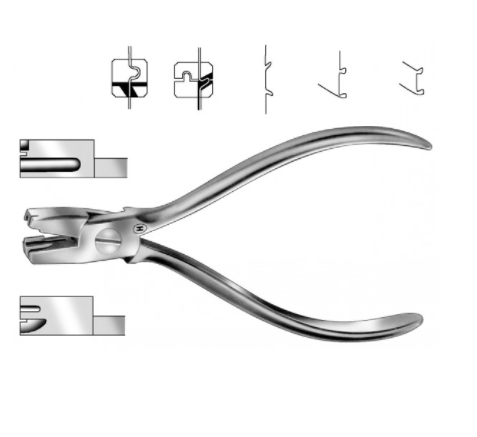 Con la horquilla de un extremo del instrumento puede agarrar el arco mesial y distal y puede instroducirlo fácilmente en la ranura del bracket, especialmente en caso de rotación dental. En el otro extremo se encuentra un director de ligadura convencional para ocultar el alambre de ligadura.