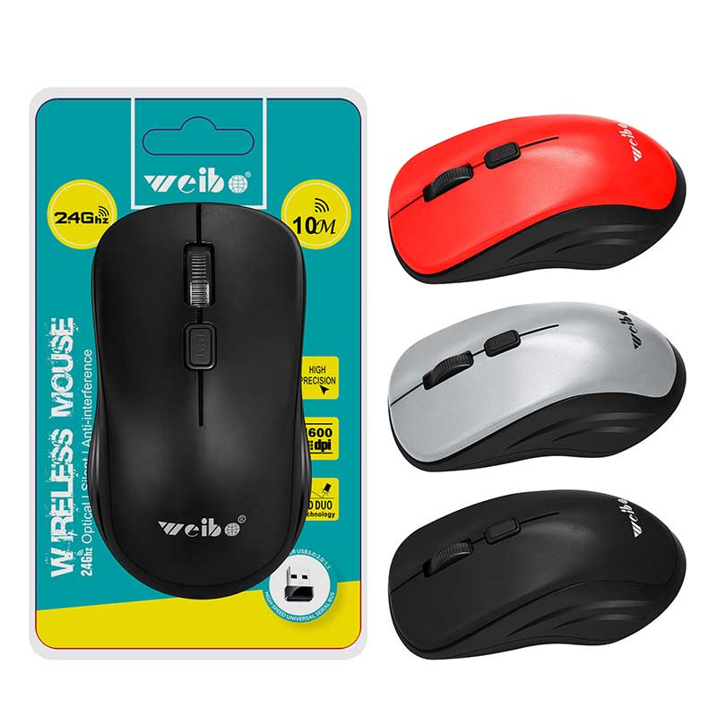 Evita el desorden y el uso molesto de los tradicionales mouse con cable gracias al mouse inalámbrico Weibo. Su diseño ergonómico, tamaño compacto y pego ligero lo hace un mouse versátil y cómodo de usar por un tiempo prolongado. Material de alta calidad resistente y duradero.