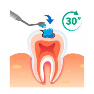 En 30 segundos sin dolor ni sensibilidad, puede remover la caries con una cureta. No requiere uso de turbina y en la mayoría de los casos el uso de anestesia.